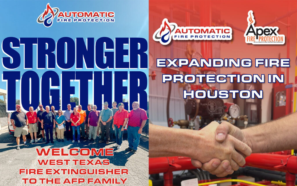 Strengthening Fire Protection Across Texas Automatic Fire Protection (AFP) is proud to announce a major step in our statewide growth — the strategic acquisition of Apex Fire Protection and the fire protection division of West Texas Fire Extinguisher (WTFE). This exciting expansion not only strengthens AFP’s reach across Texas but also brings together decades of […]